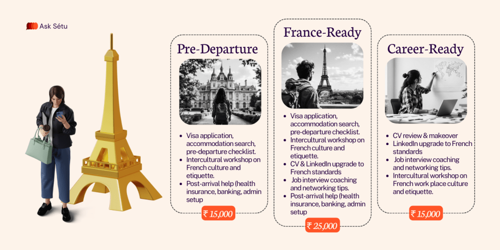 Join the Ask Sétu to get a personalised upskilling journey and assistance in your job search in France. Set up a call today to discuss your requirements.
