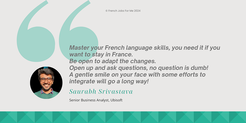 While talking about the challenges he faced during the job search, Saurabh emphasised that proficiency in French is indispensable for anyone seeking to establish themselves in France professionally. He had pushed hard to complete a B1 in French before leaving India for his Masters program, and continued to upskill and polish his French skills once he landed in France. He believes that it played a key role in landing this job.