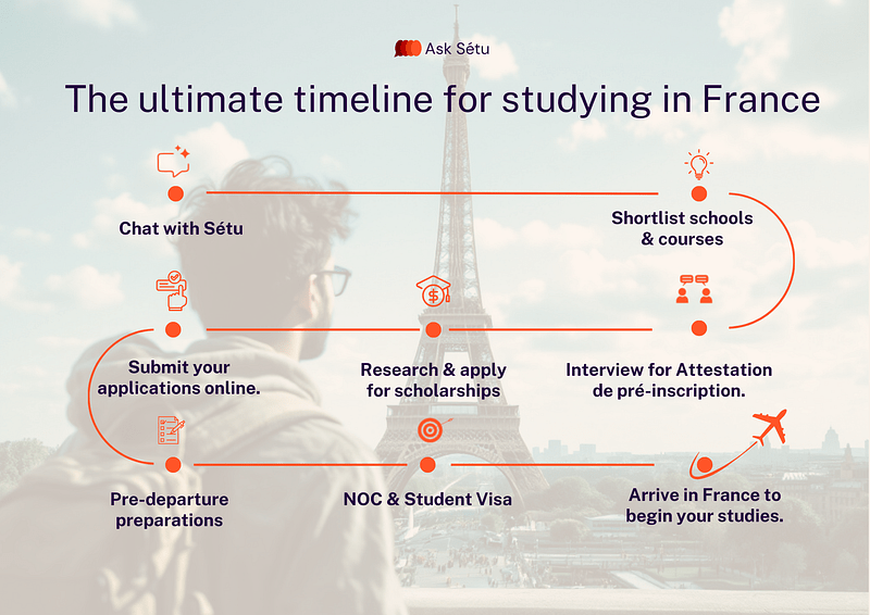 By following this timeline, you can handle each stage of the French university application process confidently. Begin early, stay organised, and let Sétu guide you through a seamless experience — from finding the right program to settling into life in France.