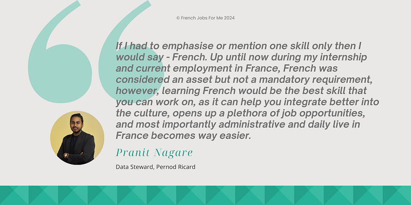 While technical skills are crucial, Pranit emphasises the importance of learning French for seamless integration into the French workplace and society.